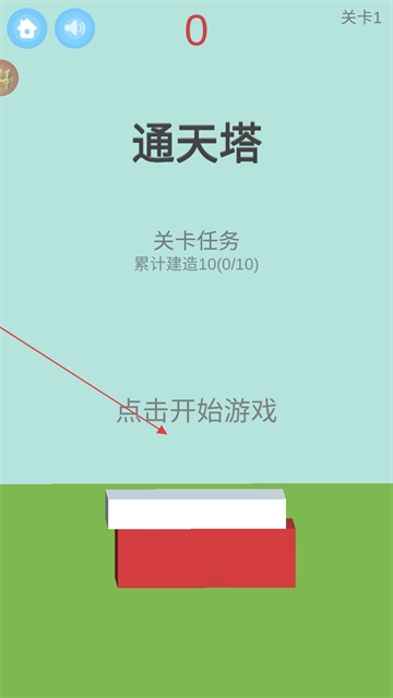 3、进入关卡后,点击【点击开始游戏】按钮,通过点击屏幕等操作来操控方块进行堆叠,从而达成关卡设定的目标。