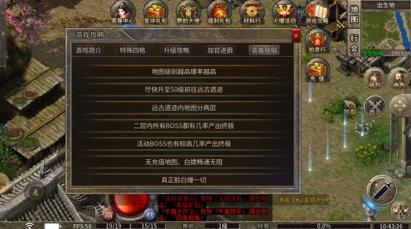 尽快升级到50级后前往远古遗迹,该遗迹地图分为两层,二层里的所有BOSS都有概率掉落终极装备,活动BOSS掉落终极装备的概率也比较高。