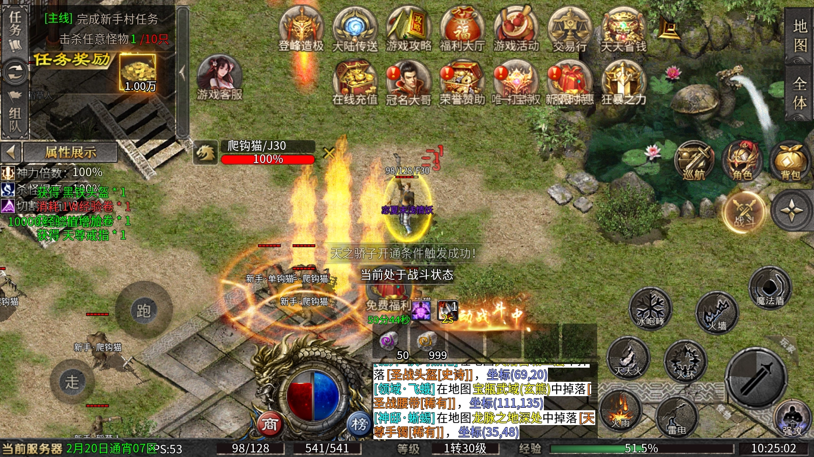 这是唯一的升级途径(只需打怪即可,完全公平,充值也无法提升)。