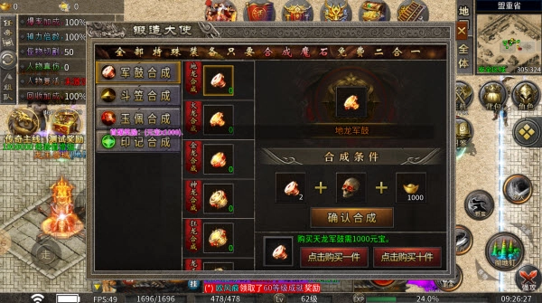 合成介绍:2件低级合1件高级,时间够,白拿终极绝非梦想。