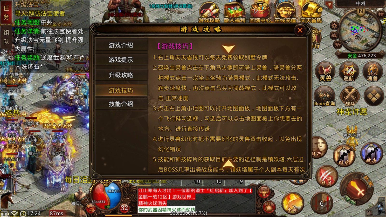 目前获取技能与神技碎片的主要渠道是镇妖塔。通过第六层后,BOSS有概率掉落骑战技能书。镇妖塔作为个人副本,每日有进入次数限制,建议前期积累一定装备基础并提升法宝伤害后再尝试挑战。