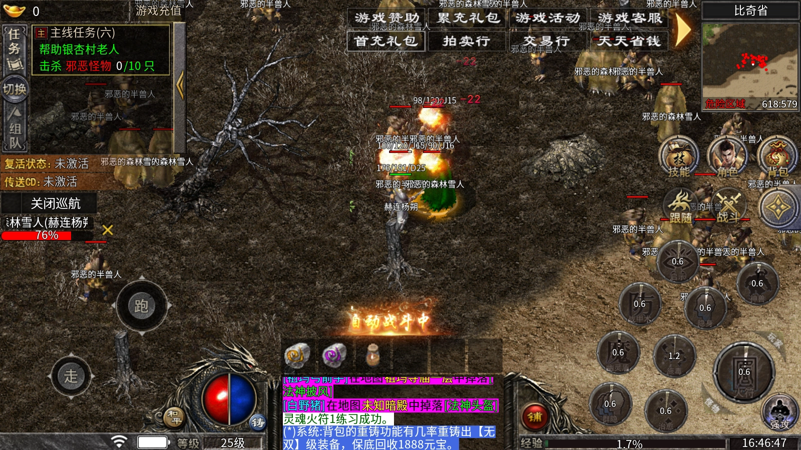 极品系统:本服装备最高+9 所有爆出的装备都有几率出极品 也有重铸系统,可重铸极品属性跟装备品质。