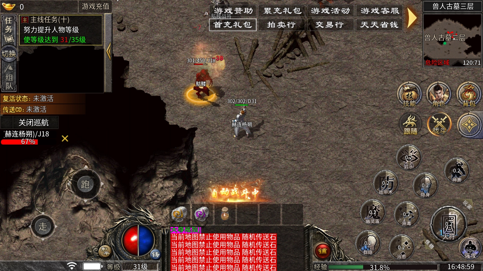 战士:爆发之王。上线即赠群攻神技,后期爆发尤为强劲;不过其群攻能力相对较弱,发展速度也较为缓慢。