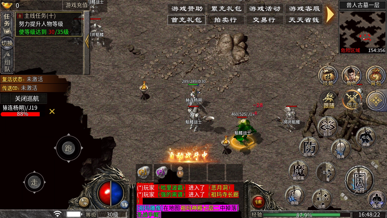 游戏等级上限为150级,玩家通过击杀怪物可提升等级至120级;各大地图底层会刷新数量众多的小怪与BOSS,在满足玩家打宝需求的同时也兼顾了升级体验;此外,佩戴勋章还能获得额外的经验加成效果。