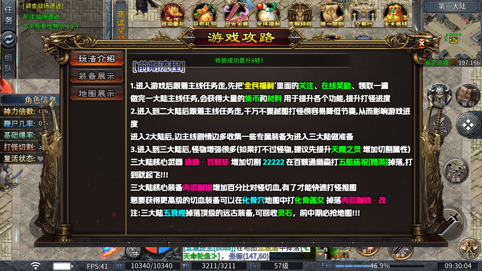 进入游戏后跟随主线任务推进,记得先把“全民福利”板块里的关注奖励、在线奖励都领取一遍。