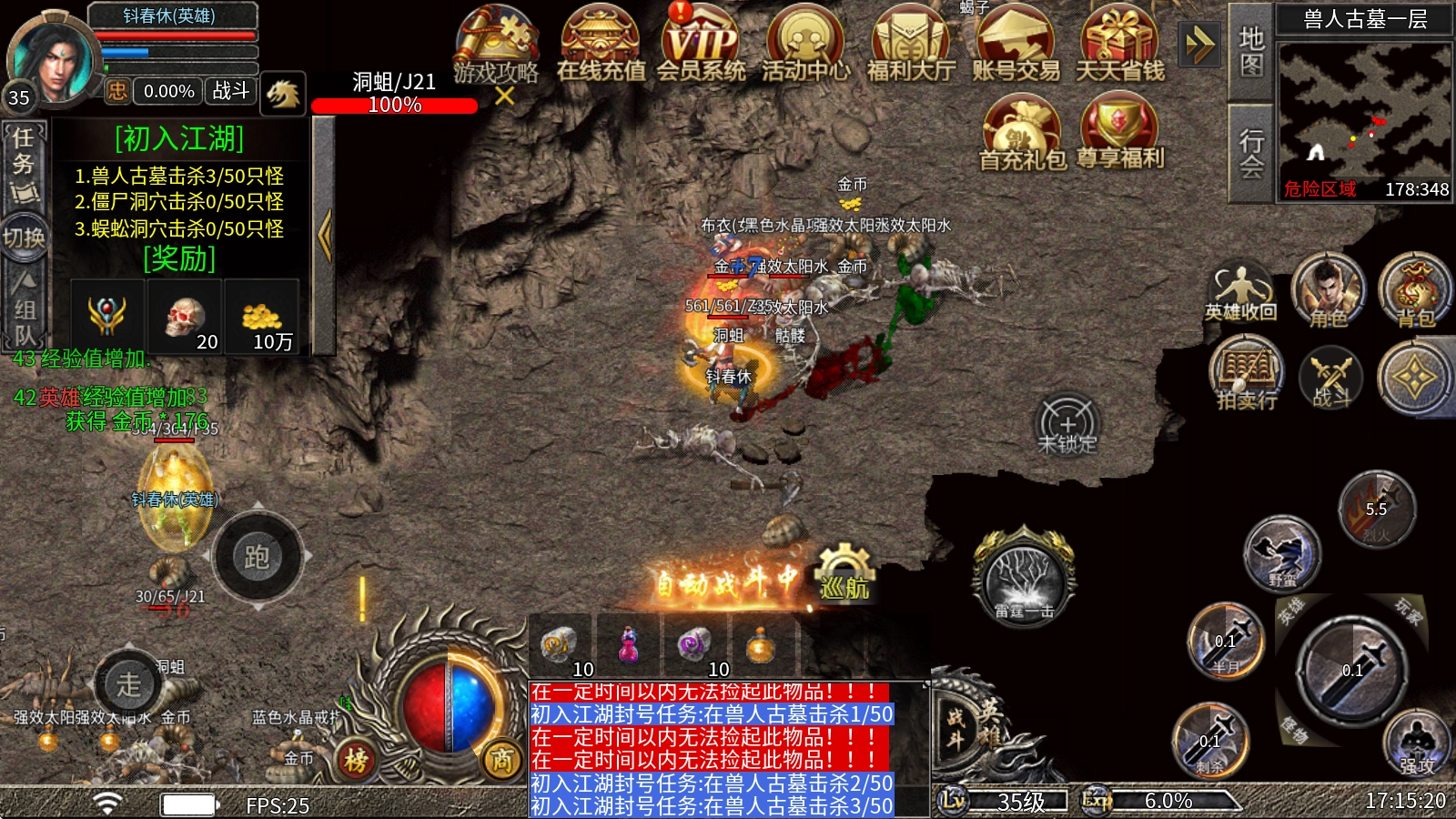 前期快速获取装备的方法:进入高级地图,挑战魔龙教主,有机会爆出全服所有高级装备。