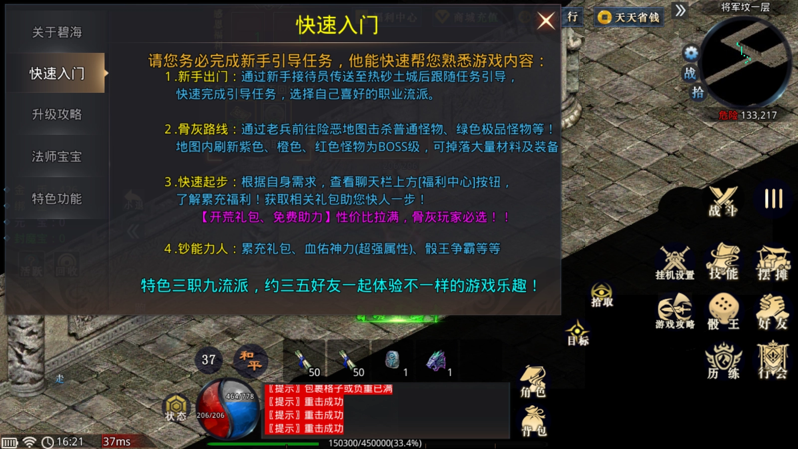 骨灰路线:借助老兵进入险恶地图,击杀普通怪物、绿色极品怪物等!地图中刷新的紫色、橙色、红色怪物均为BOSS级,能掉落大量材料与装备。