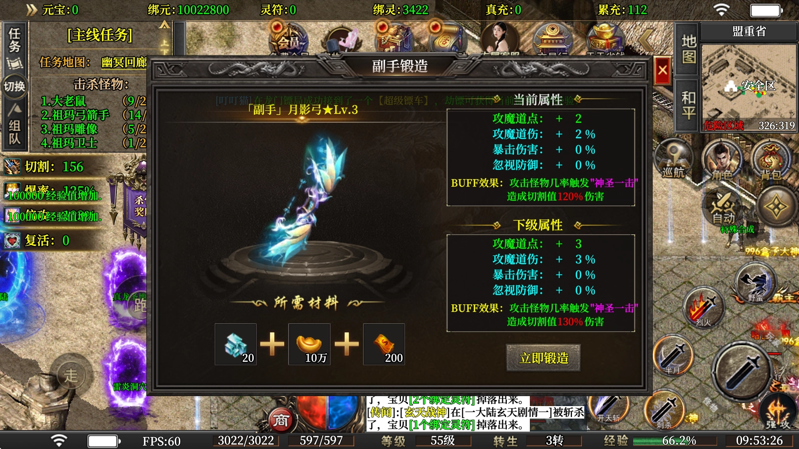 副手锻造:消耗千年玄铁、元宝与灵符即可进行锻造,在提升攻魔道等属性的同时,还能获得神圣一击的BUFF。