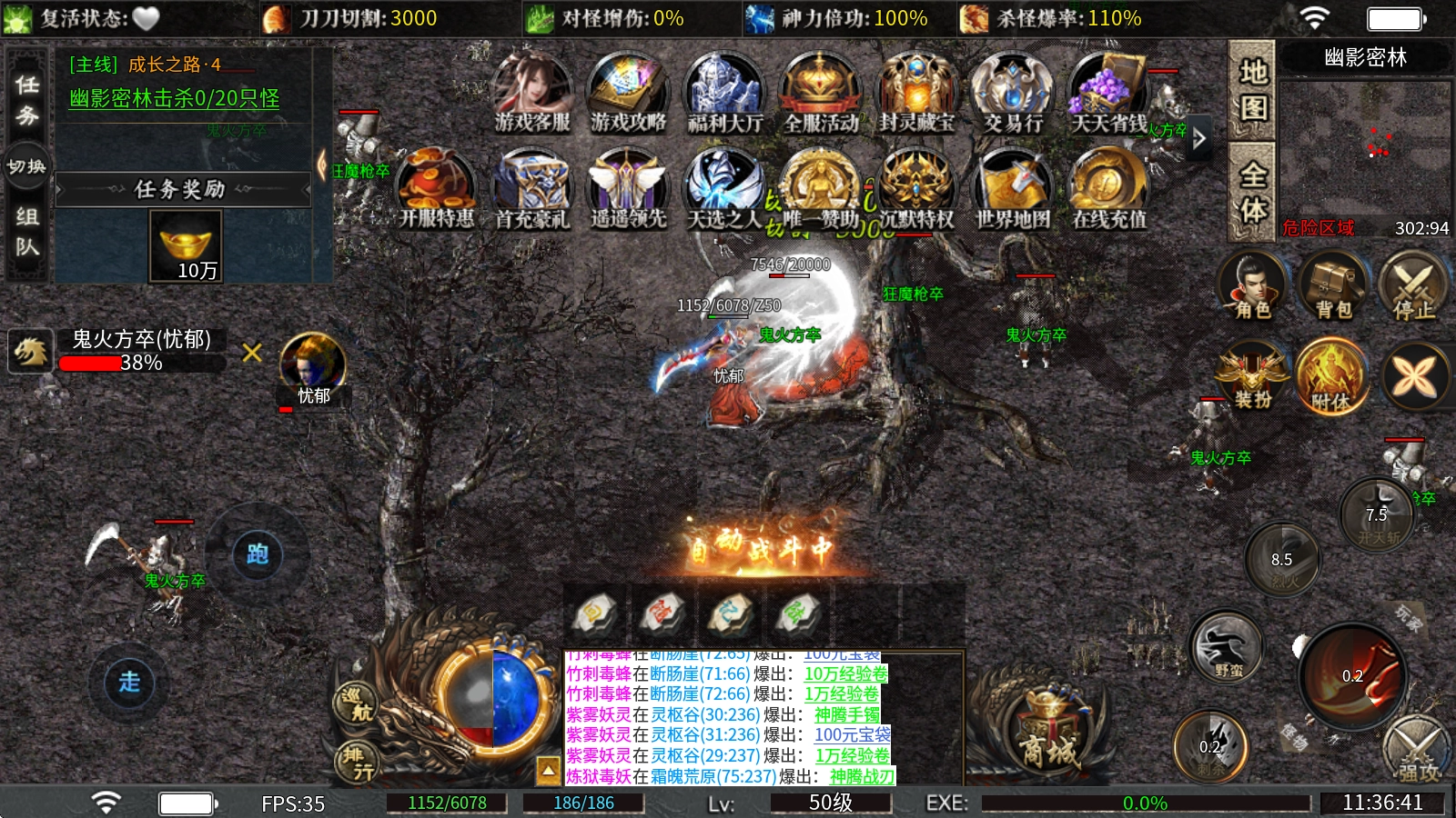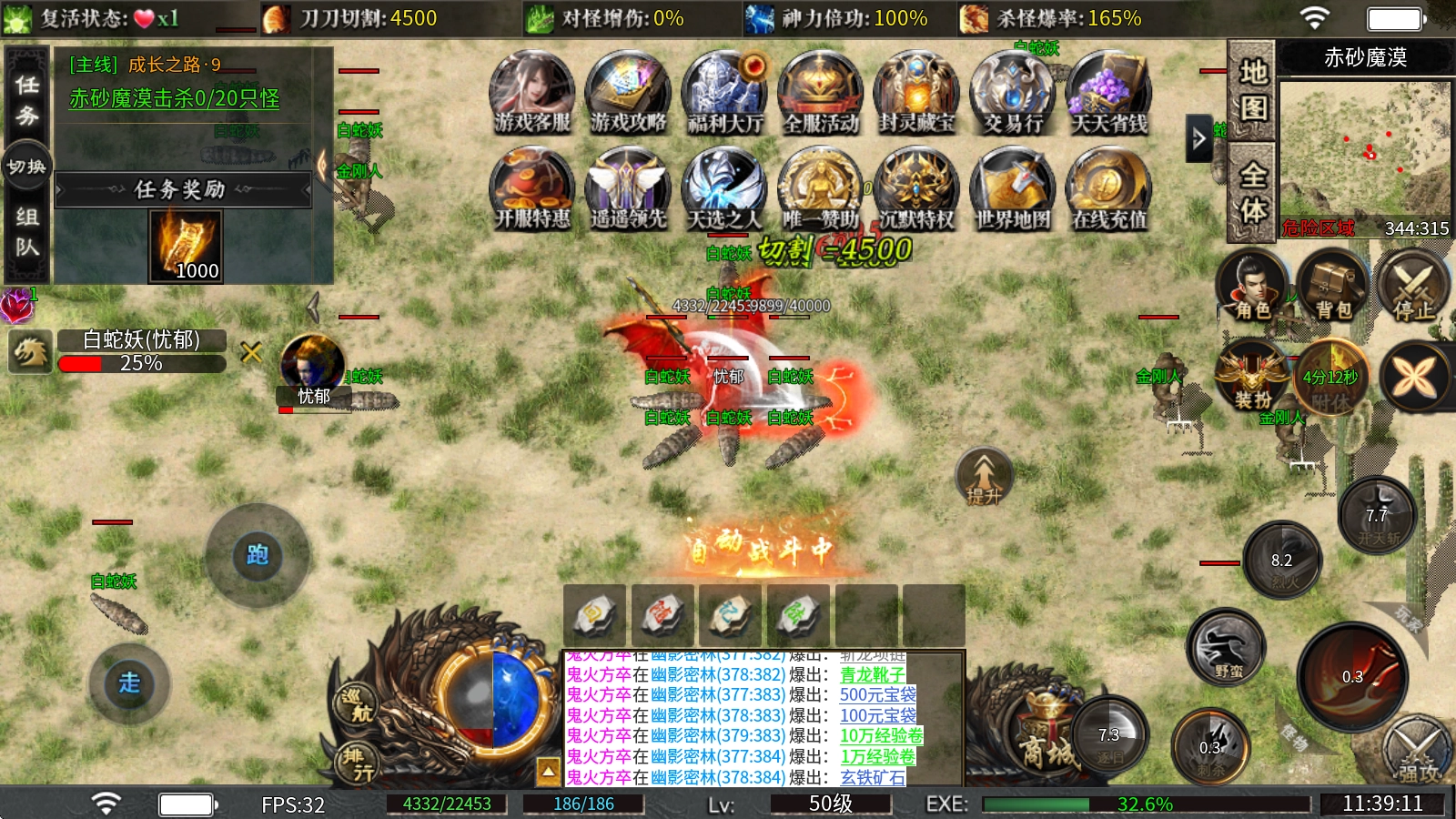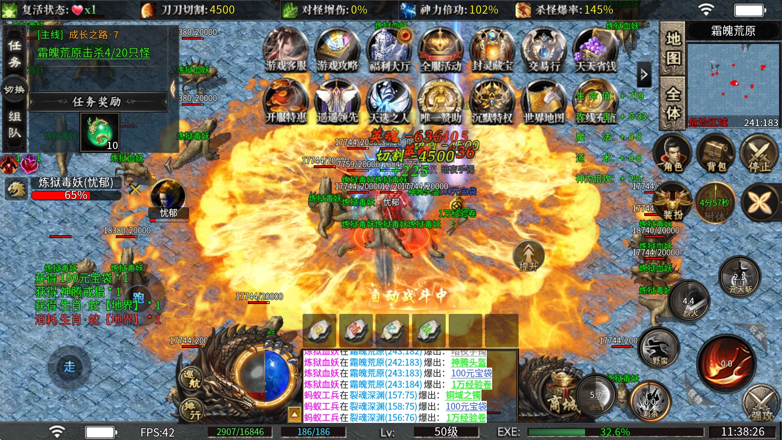 前期基础切割的主要来源是【饕餮吞灵塔】,切割增幅则来自【斩仙夺魂剑】,能有效助力你快速打怪。