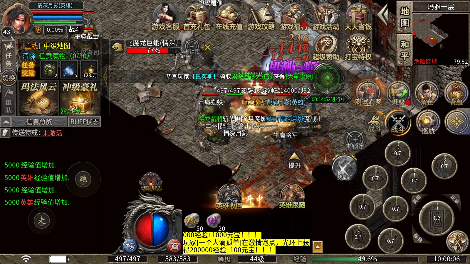 在线奖励、元宝首爆、灵符首爆等超多福利享不停,海量材料、装备、货币奖励拿到手软。
