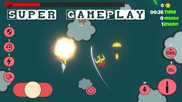 这是一款2D飞行射击游戏,画面简洁。玩家将操控自己的飞机,在天空中与敌机展开激烈战斗。敌机的武器威力强大,你需要精准控制飞机,对它们进行射击。