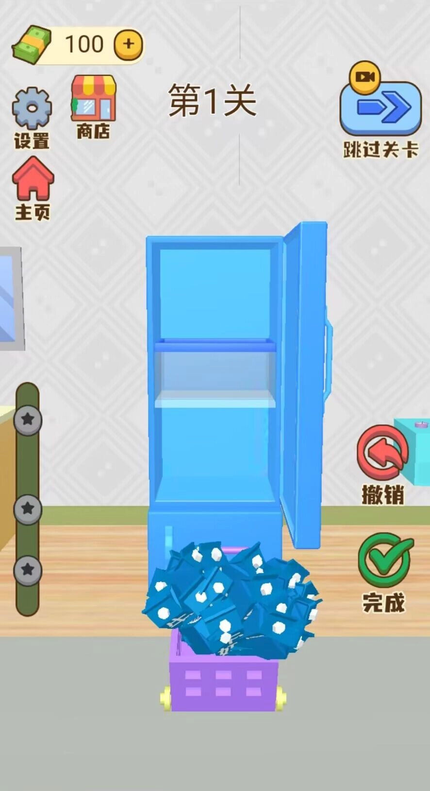 2.只需简单点击屏幕上的操作选项,滑动各类物品,就能轻松完成收纳,上手毫无难度。