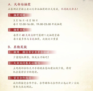 其二,项目组将发出邀请,无论是曾在天命站主观题环节为天刀提出恳切建议,还是在天刀IP的各大自媒体平台为天刀出谋划策,都有机会获得这份邀请。
