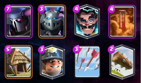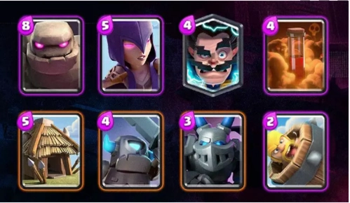 2、这套以石头人为核心的卡组,在加入增强后的女巫后会变得更具统治力。虽然4.4的均费让它稍显迟缓,但它本就不是主打速攻的卡组——前期靠小皮卡、机甲、电法、滚桶和小屋搭建起稳固的防御阵线。一旦进入双倍圣水阶段,女巫搭配石头人的推进组合将势不可挡,毒药法术则用来精准清除对手的解场单位;不消片刻,石头人身后便会汇聚起茫茫人海,对手只能在这波攻势下节节败退。