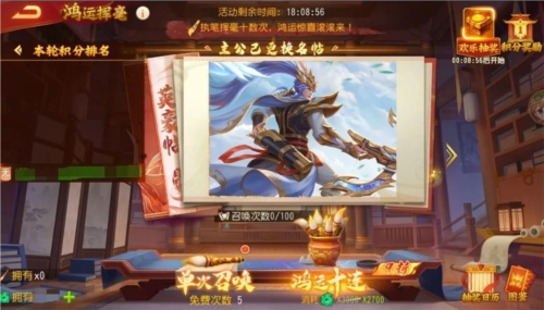 2、抽奖活动开启期间,主公只要完成过1次挥毫操作,即可自动获得本轮抽奖的参与资格,且挥毫次数越多,中奖概率就越大。