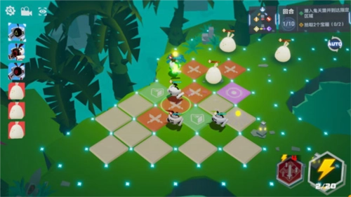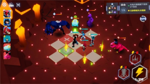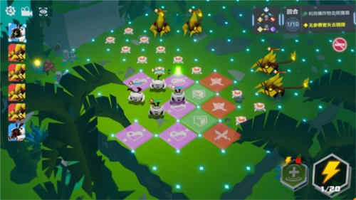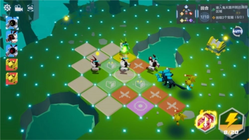 进入战斗状态后,左上角会呈现参赛者与敌人的行动次序,右下角展示元力值和技能,右上角则显示关卡目标以及剩余的战斗回合数。整个战场被划分成多个小地格,天使们需指挥参赛者在这些地格间移动、排兵布阵,在限定回合内战胜所有敌人。
