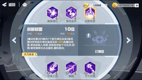 1、[幽雷魂引][刹那惊雷][雷电监牢]会随机附加1个负面效果,该效果持续2回合,同时自身最大生命值提升10%。负面效果包括:法攻降低30%、物攻降低30%、法防降低30%、物防降低30%、受治疗效果降低50%、承受伤害提升20%,且这些负面效果不可叠加。