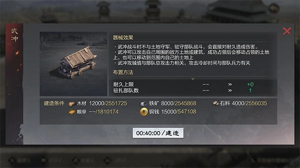 武冲能够实现无损翻地。使用前需先占领9格地块完成布置,供部队使用。使用期间每10分钟会消耗一次地块耐久。布置完成后无法直接前往下一地块,若要继续前进则需再次占领9块地。