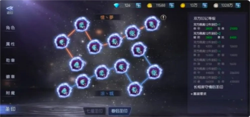 七星圣印:这个机制的含义很直观——角色全身装备的强化等级总和达到对应数值,就能激活相应的属性加成,并且可以依据不同品质装备的等级上限来进行升级操作。