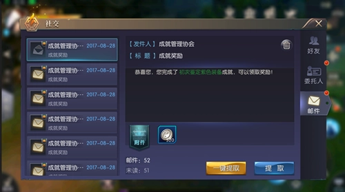 中玩家会接受到邮件。
