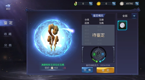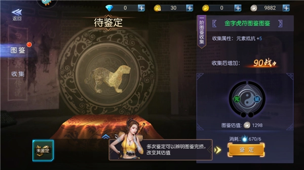 2、点击“鉴定”按钮,通过多次鉴定能够判断图鉴的完整程度,进而调整其估值。