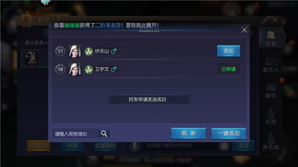3、输入你想要的好友昵称,点击添加即可。