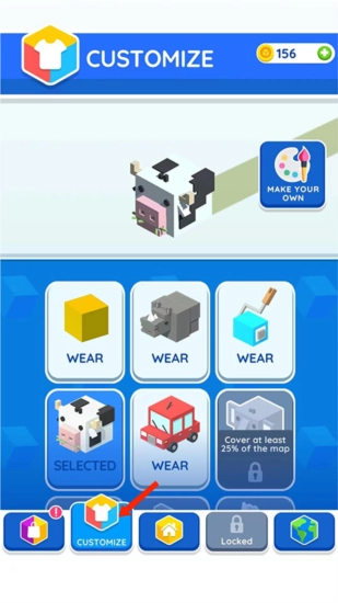 8、在【CUSTOMIZE】界面,能够选择不同的方块皮肤。
