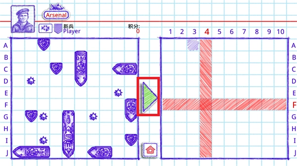 6、若点击的格子为空,便会切换至对手的回合;若成功命中战舰所在位置,则可再次获得一个回合。当一艘战舰被完全摧毁后,其周围的部分格子会自动被清除。