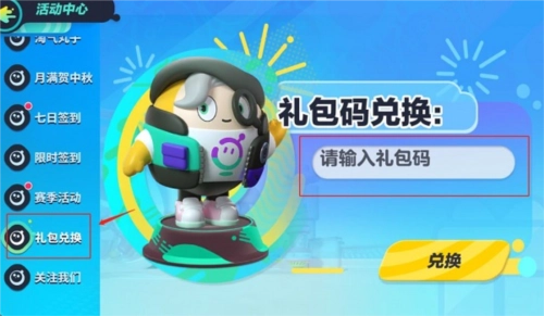 2、进入【活动中心】界面后,将最左侧的活动栏向下滑动至底部,点击倒数第二个【礼包兑换】按钮,随后在兑换码输入框中填写兑换码并领取奖励即可。
