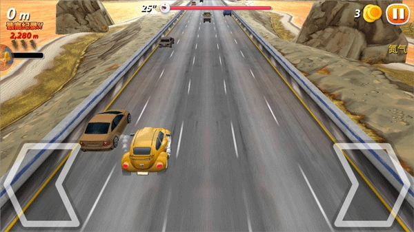 1、游戏主要玩法是飞车竞速,玩家需要持续躲避各类障碍车辆,同时收集金币和道具,不断提升速度,挑战并突破自己的极限!