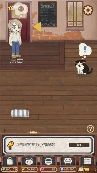 2、把性格相近的猫咪和顾客进行配对,就能最大程度提升他们的开心程度,从而解锁更多可以收集的猫咪。