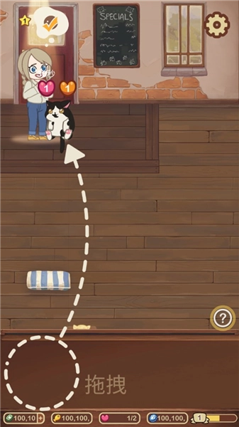 7、选择你想要配对的猫猫,将猫猫拖放到顾客手里;