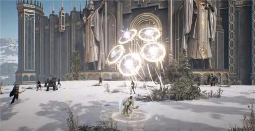 表示,在攻城战中可以运用名为「魔法屏障」的独特机制,以实现更高效的团队协作。攻城战的战场设定在大雪纷飞的雪原,环境冰冷;同时,为了突出战斗时的动态效果,整体战场采用黑白色调,以此凸显人物受伤时的血迹,营造出更为华丽且富有冲击性的战斗效果。