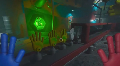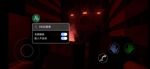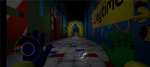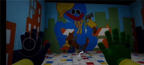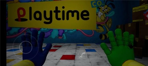3、苏醒后发现自己身处一个陌生的世界,周围有许多玩具。左下角的按钮能控制角色自由移动,右侧的图标分别对应左右手掌,方便拾取物品,不过目前只能使用绿色手掌。