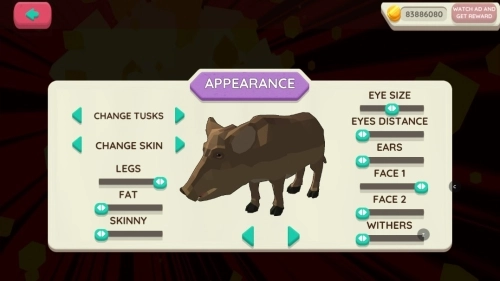 -根据需要自定义猪。选择皮肤、象牙、鼻子参数。