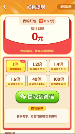 3、只要完成合成目标就能直接获得提现机会,而且越往后提现奖励会越丰厚!