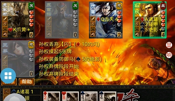 规则和实体版《三国杀》差不多,玩家得借助操作各类卡牌,来实现击败对手或者完成相应身份任务的目的。