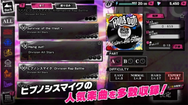 此外,催眠麦克风采用精美细致的二次元动漫画风设计,呈现出丰富多彩的原创剧情故事内容。简单易上手的操作方式让玩家轻松体验乐趣,切换不同模式进行尝试,多人竞技刺激无比。在游戏中,玩家还可以自由选择和解锁音乐曲目,带来非常不错的音游体验!