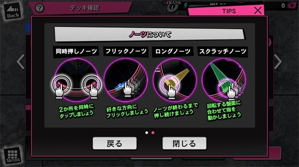 9、过程中我们会遇到不同的按键,有时需要同时点击两个位置,有时要朝着指定方向滑动,还有时得一直按住直到下落的按键消失,并且要跟着按键的位置移动;