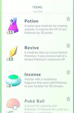 打开背包就能看到你拥有的所有道具,要随时注意自己身上还剩多少精灵球,一旦球用完了就得赶紧去补充,别等好不容易遇到心仪的宝可梦时,才发现手里一个球都没有,只能干着急。