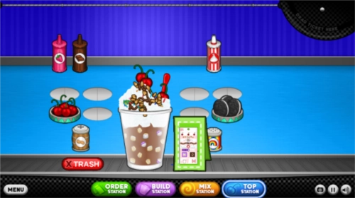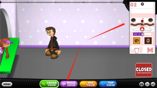 6、记录下顾客的要求,然后点击buildstation、mixstation和topstation来启动冰淇淋的制作流程。