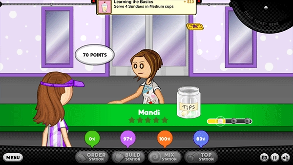 1、这个更新后的Papa's Freezeria版本新增了数十位之前版本没有的顾客,而且原始版本里的可解锁食材数量也翻了一倍!我们还添加了全新的触摸控制功能,让在平板上制作和浇制圣代变得更简单、更有趣。
