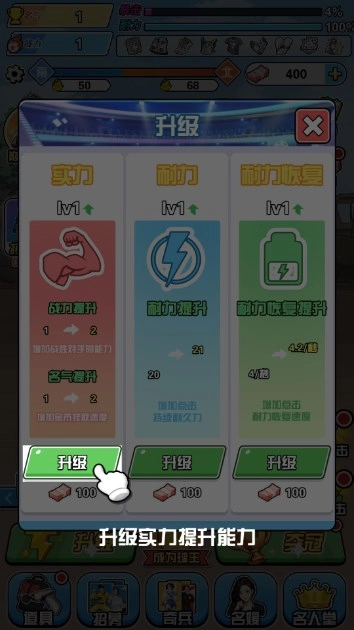 3、点击升级实力提升能力