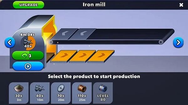 您的生产之旅从冶炼厂开启,这里需要用到矿石与煤炭来炼制钢铁。随着等级逐步提升,可供使用的工厂种类会愈发丰富。就拿锯木厂来说,初期它仅能生产木材,后续则能进一步加工出桶、胶合板以及托盘等产品。