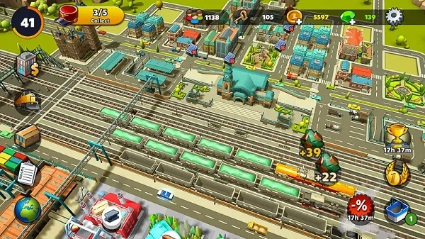 空闲铁路大亨是一款模拟经营铁路的游戏!玩家需要在游戏里建造铁路站点,过程中会遇到不少问题,只要一步步把站点建起来就好,玩起来特别有成就感!在游戏中,玩家得通过投资各类设施和火车来推动业务发展,提升火车站的利润;同时,游戏里还有丰富的任务等着玩家去完成,每完成一个任务,都有机会获得不同等级的火车,让自己的火车站变得更有特色。