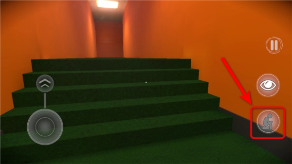 4.另外设有下蹲按键,玩家点击该按键后,能够通过蹲下的动作来躲避怪物的视线。