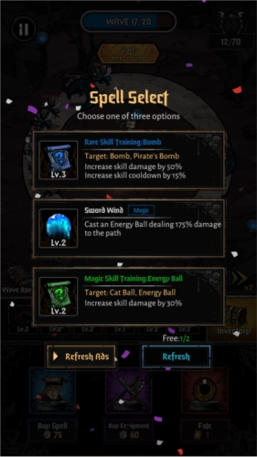 2.此处会随机刷新技能以及技能属性加成书,你需要挑选合适的。