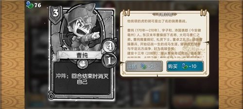 2、每个回合开始时都会抽一张手牌,使用手牌需要消耗相应的命令点数,右侧的数字表示部队牌的攻击力与生命值;