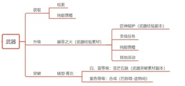 高等级武器可通过检索或纯能馈赠达到30级,其升级与突破所需素材的获取方式如下: