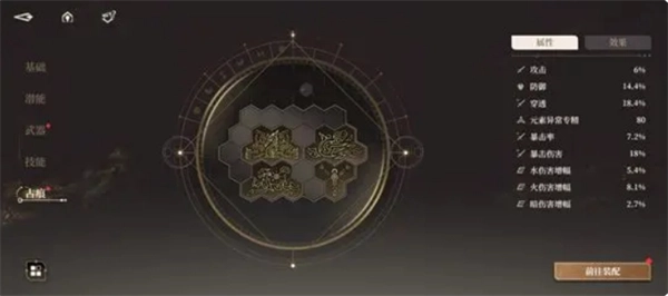 古痕可视为身体附魔,其为角色带来的属性加成以百分比形式呈现,同时附带不同元素伤害的提升与元素异常专精效果,角色的基础面板中能查看经古痕加成后的各项数值。